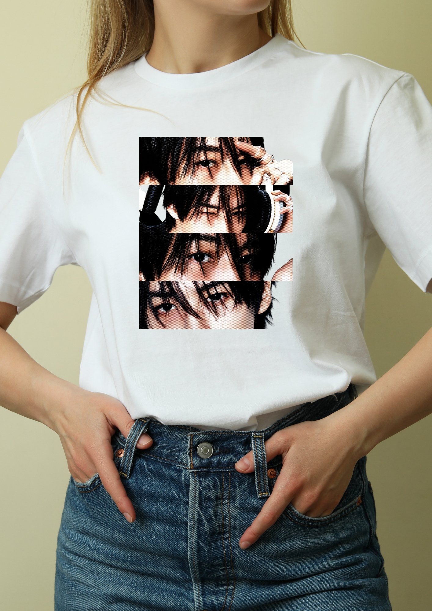 A estampa traz referências à personalidade marcante de Lee Know: seu olhar intenso, sua elegância natural no palco e sua energia poderosa nas coreografias. Conhecido por seu talento impressionante na dança, seu charme único e sua presença forte nas performances, Lee Know inspira uma peça que combina atitude, estilo e paixão pelo K-pop.